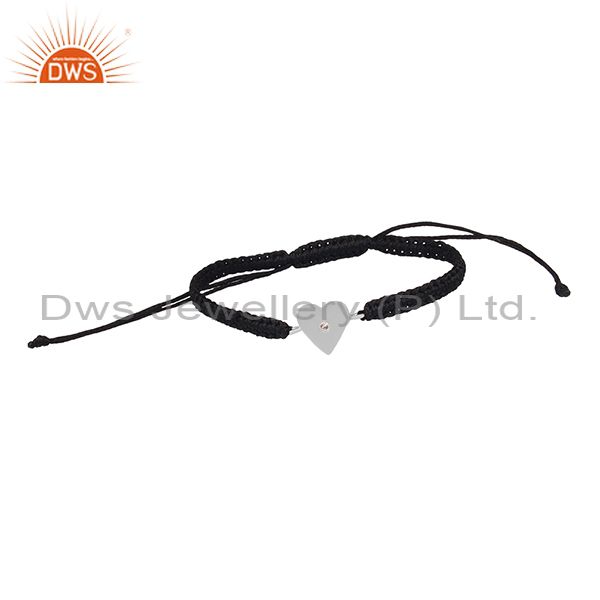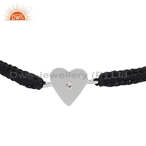 Handmade Sterling Silver White Topaz Heart Connector Black Macrame Bracelet