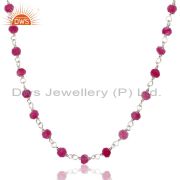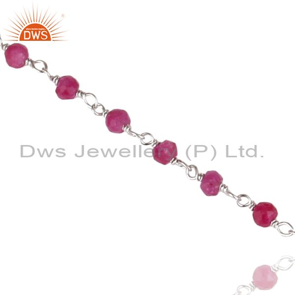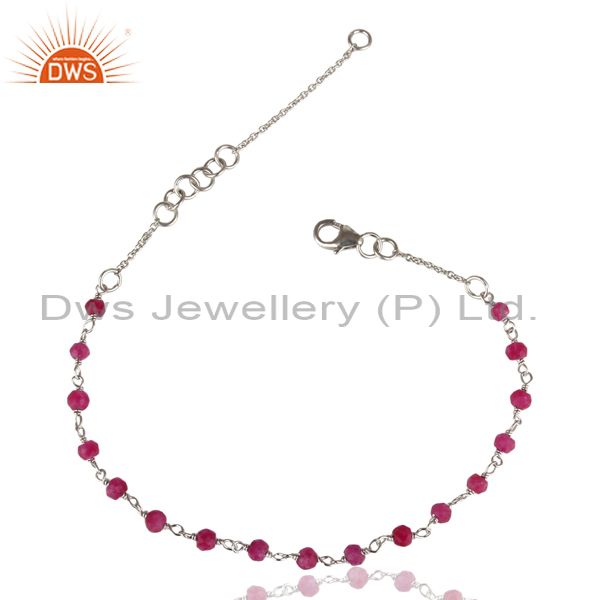 Handmade White Rhodium 925 Sterling Silver Natural Red Aventurine Beads Bracelet