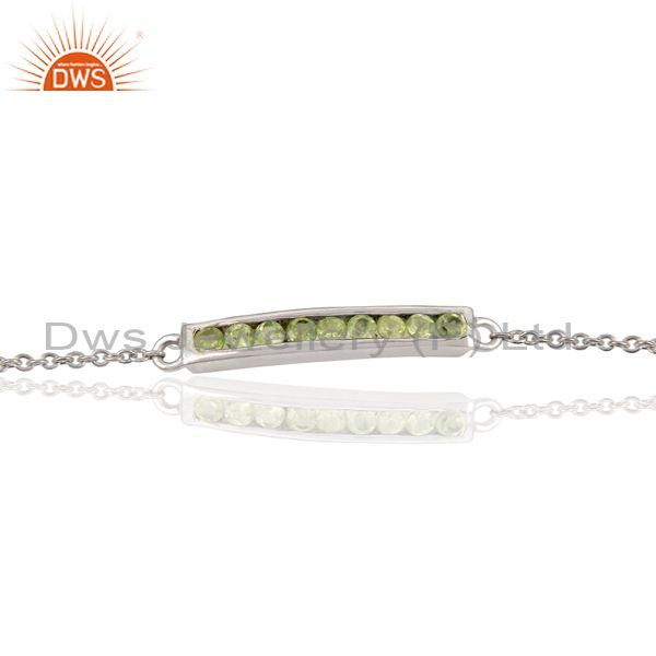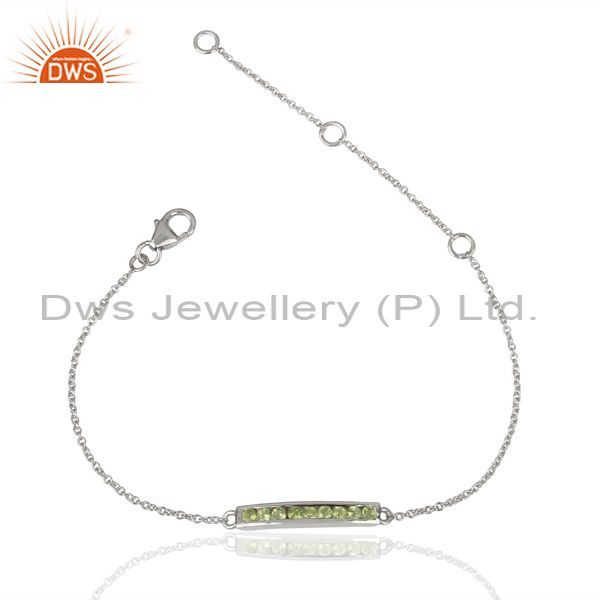 Handmade White Rodium 925 Sterling Silver Peridot Chain Adjustable Bracelet