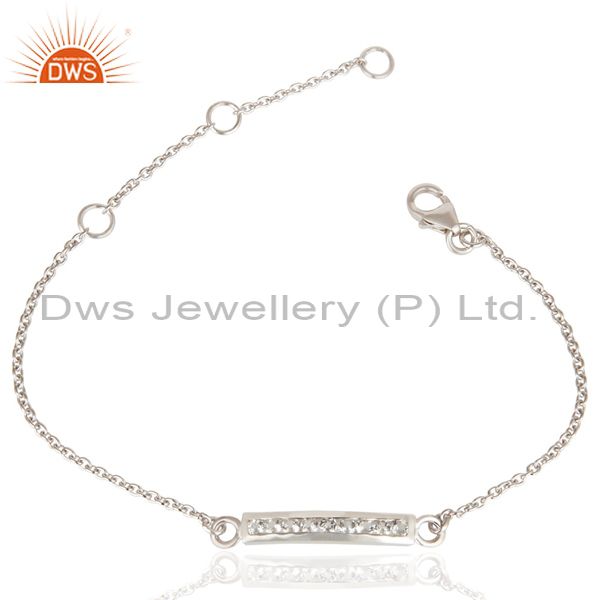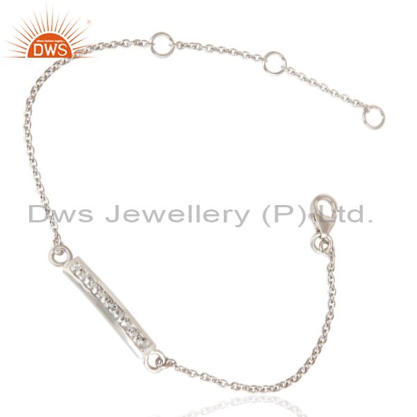 Handmade White Rodium 925 Sterling Silver White Zircon Chain Adjustable Bracelet