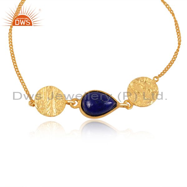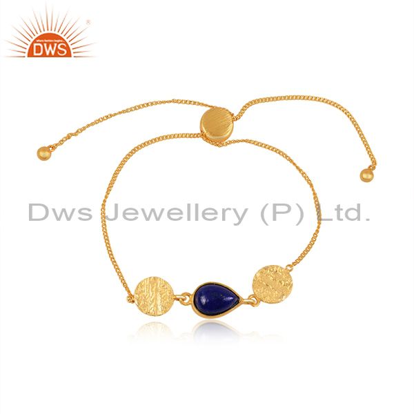 Handtextured Gold on Silver Slider Bracelet with Lapis Lazuli