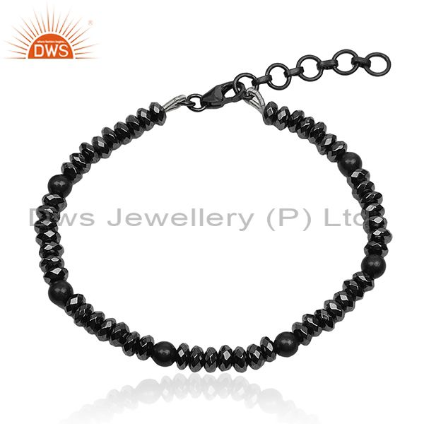 Hematite Gemstone 925 Silver Black Rhodium Plated Beaded Bracelet Wholesale