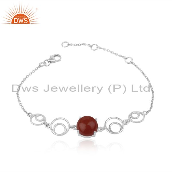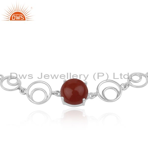 Indian Designer Sterling Fine 925 Silver Red Onyx Gemstone Bracelet