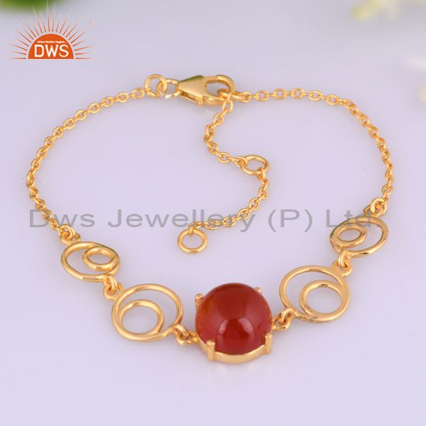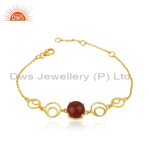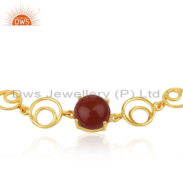 Indian Designer Sterling Silver Gold Plated Red Onyx Gemstone Bracelet
