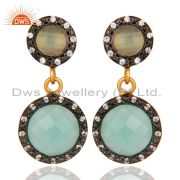 Lab-Created Blue Aqua Chalcedony 925 Sterling Silver With Gold Plated Bracelet