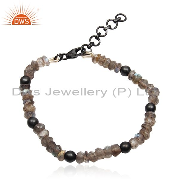 Labradorite Gemstone Black Rhodium Plated 925 Silver Bracelet Manufacturers