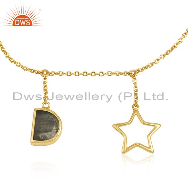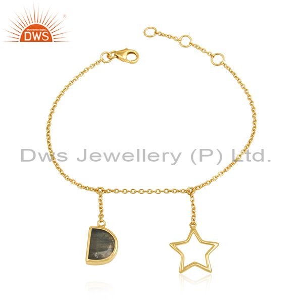 Labradorite Gemstone Gold Plated Charm Designer Silver Bracelets
