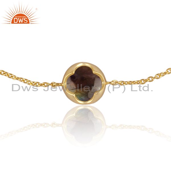 Labradorite Set Gold On Sterling Silver Charm Set Bracelet