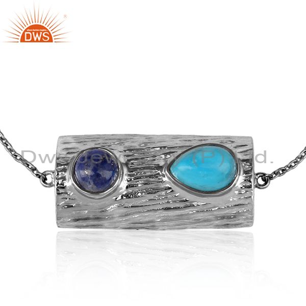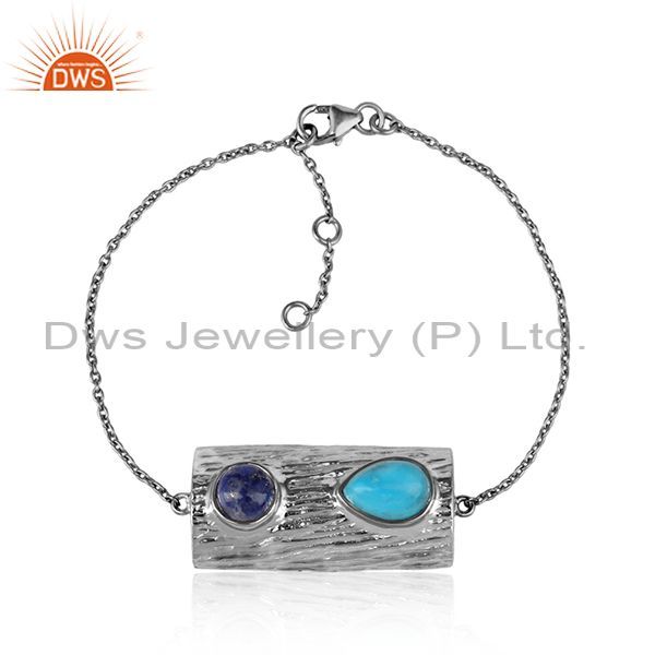 Lapis Lazuli Turquoise Gemstone Oxidized Sterling Silver Bracelet