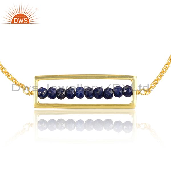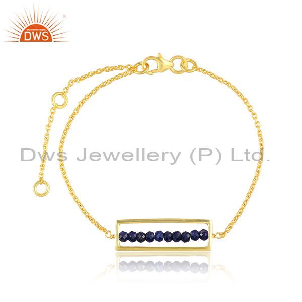 Lapis Rectangular Charm Set Gold On Silver Chain Bracelet