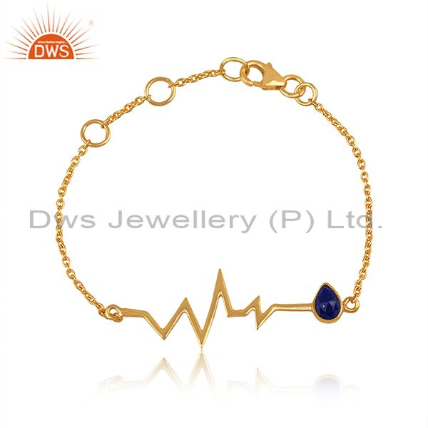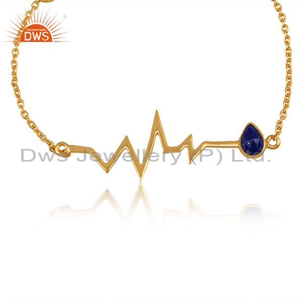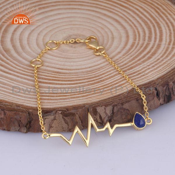 Lapis Set Gold On Sterling Silver Heartbeat Charm Bracelet