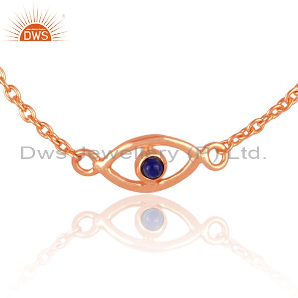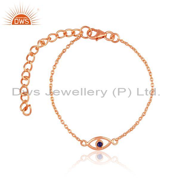 Lapis Set Rose Gold On 925 Silver Evil Eye Charm Bracelet