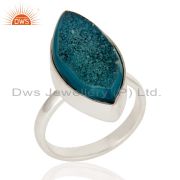 Marquise Cut Natural Blue Druzy Solid Sterling Silver Chain Bracelet