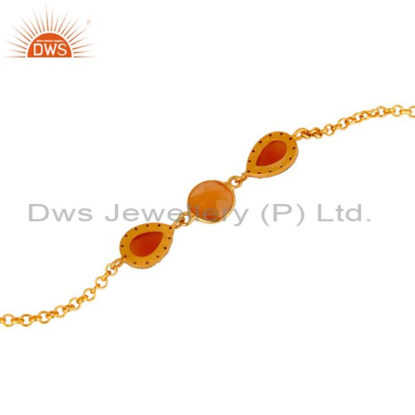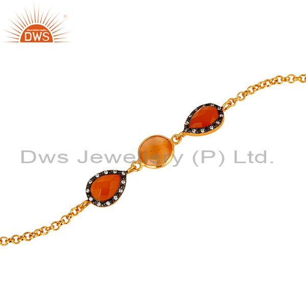 Moonstone & White Zircon 18K Gold Plated With Sterling Silver Bracelet