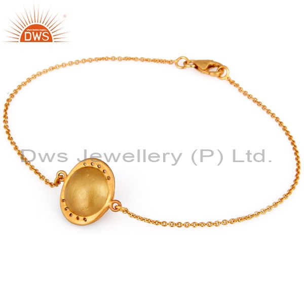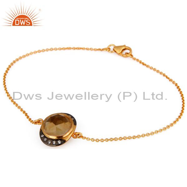 Natural Citrine And Cz 925 Sterling Silver Bracelet With Gold Plated