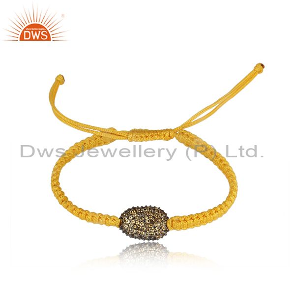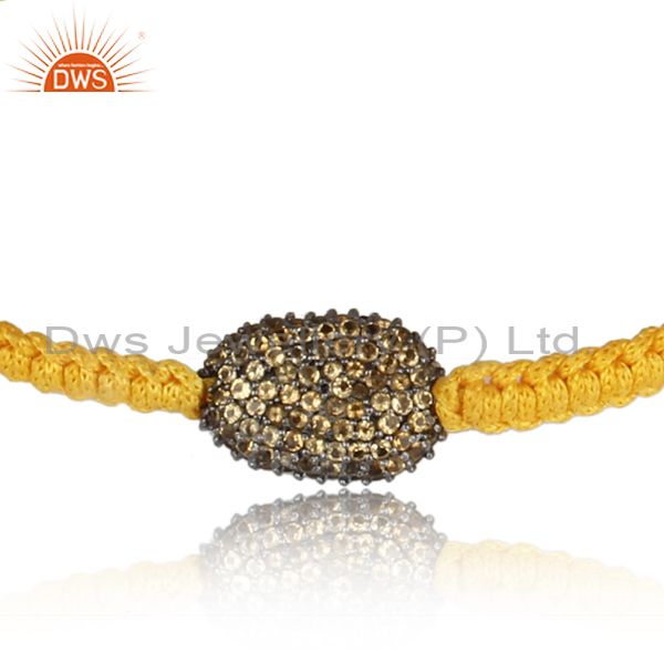 Natural Citrine Gemstone Bead Sterling Silver Handmade Charm Macrame Bracelet