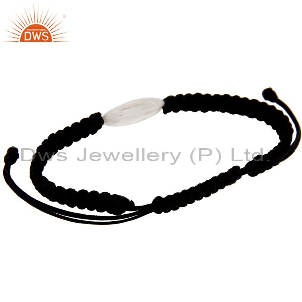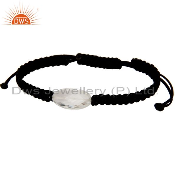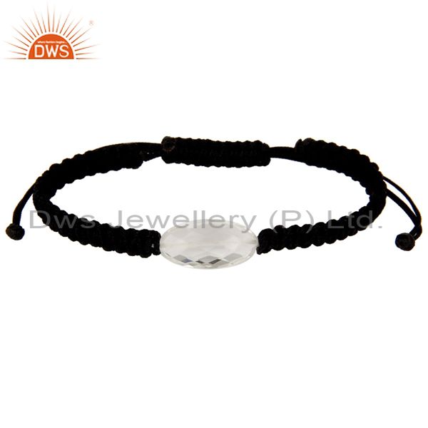 Natural Crystal Quartz Black Cord Macrame Adjustable Bracelet