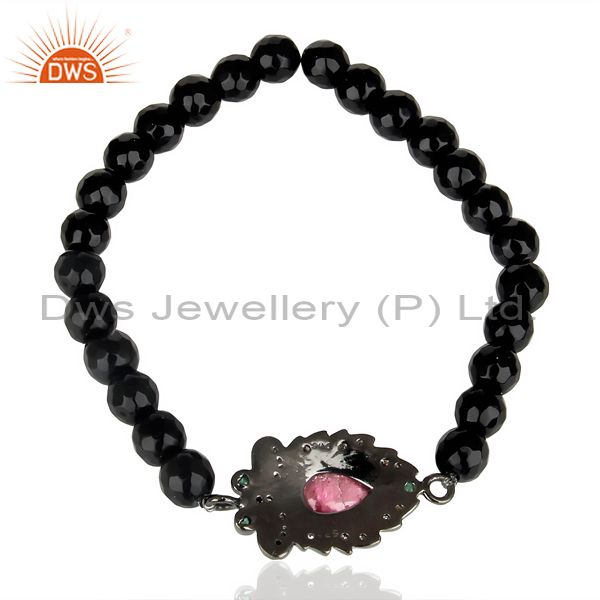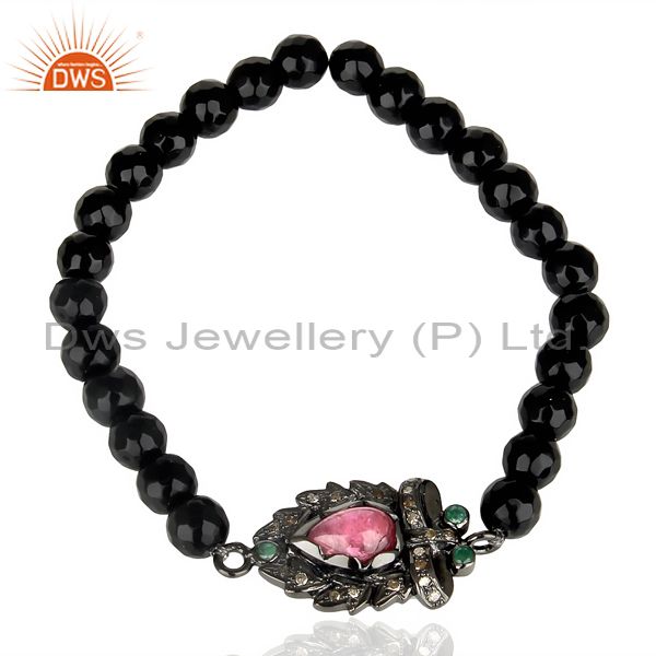 Natural Diamond Charms Bracelet,Pink Tourmaline Bracelet.Black Onyx Bracelet