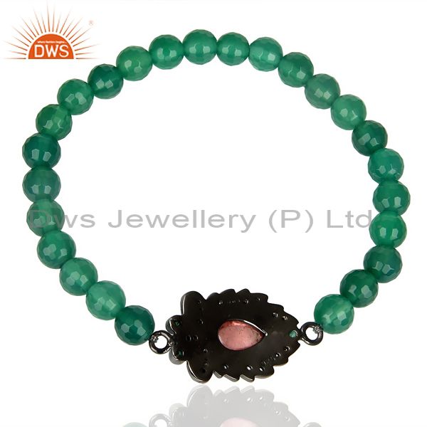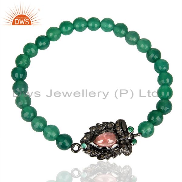 Natural Diamond Charms Bracelet,Pink Tourmaline Bracelet.Green Onyx Bracelet