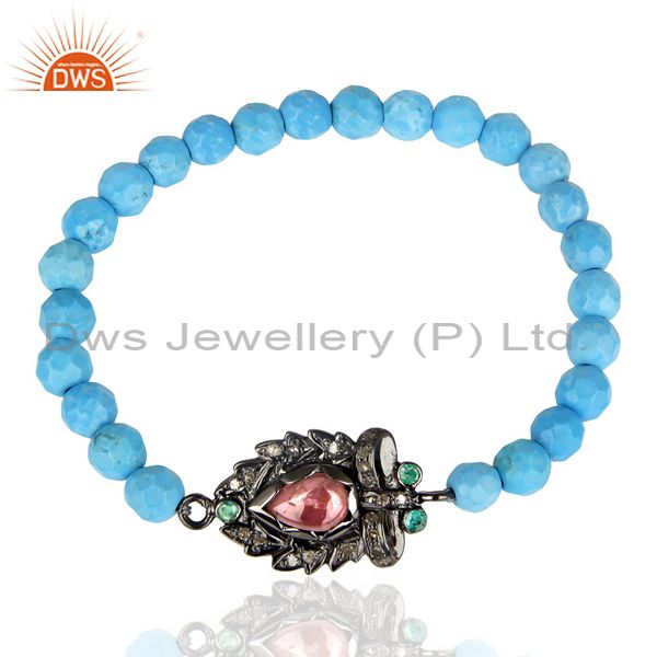 Natural Diamond Charms Bracelet,Stretch Bracelet,Pink Tourmaline Bracelet