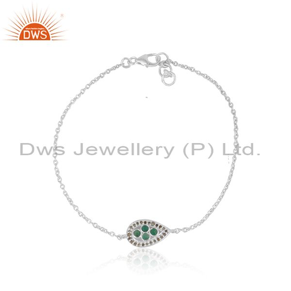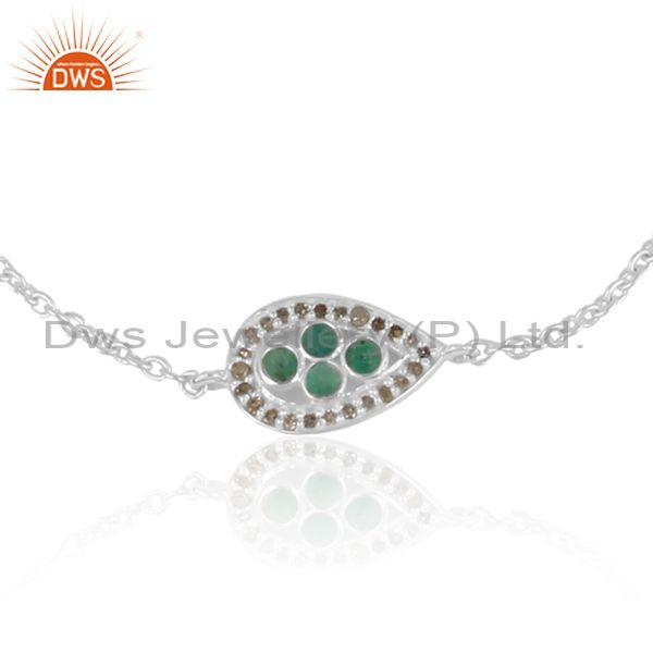 Natural Emerald Gemstone Diamond Sterling Fine Chain Bracelet