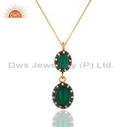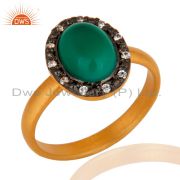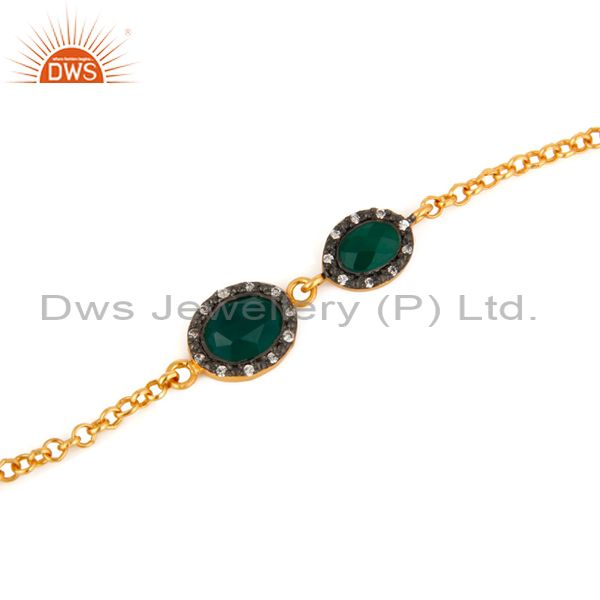 Natural Green Onyx & Cz Sterling Silver Chain Link Bracelet With Gold Plated 18K