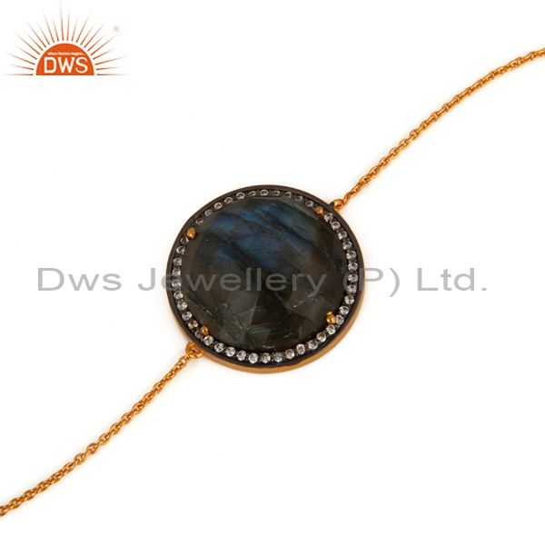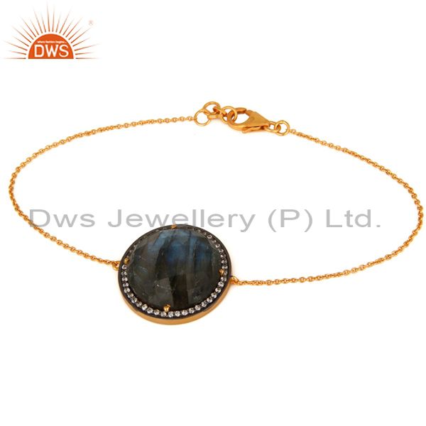 Natural Labradorite Gemstone Bracelet Made In 22K Gold Over 925 Sterling Silver