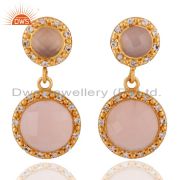 Natural Rose Chalcedony 18K Gold Over Sterling Silver Bracelet With White Zircon