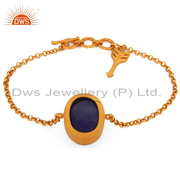 Natural Tanzanite Gemstone Bracelet In 22K Gold Over Sterling Silver Jewelry