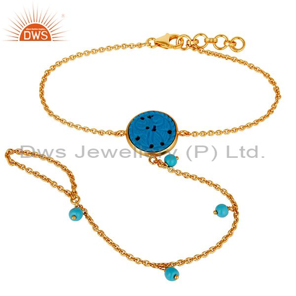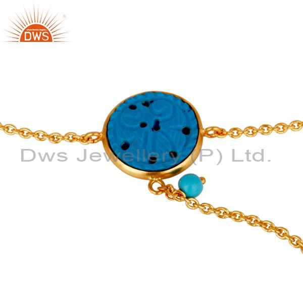 Natural Turquoise 18K Gold Plated Sterling Silver Palm Bracelet
