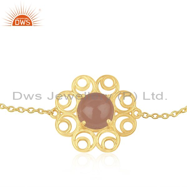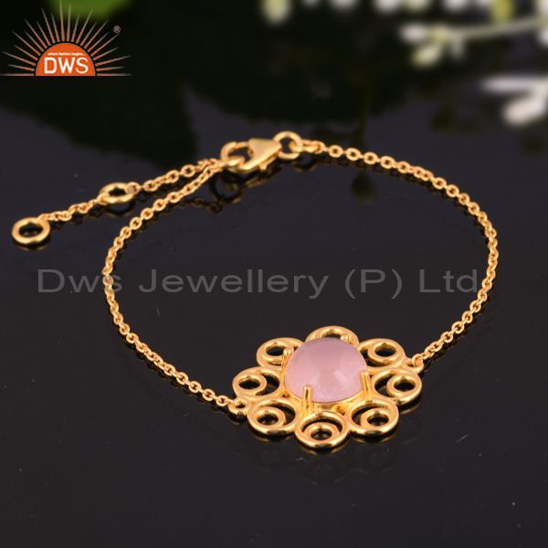 New Designer 925 Silver Gold Plated Rose Chalcedony Gemstone Chain Bracelet