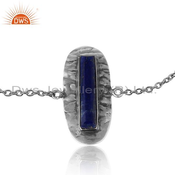 New Texture Oxidized 925 Silver Lapis Lazuli Gemstone Chain Bracelet