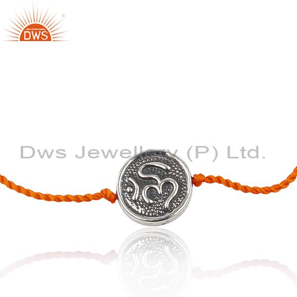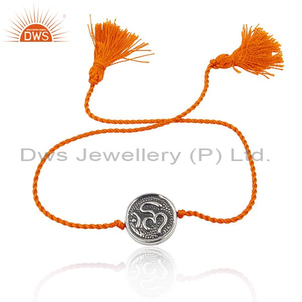 Orange Color Macrame Oxidized Om Sterling Silver Charm Bracelet