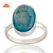 Oval Shaped Druzy Agate Sterling Silver Bezel-Set Chain Bracelet