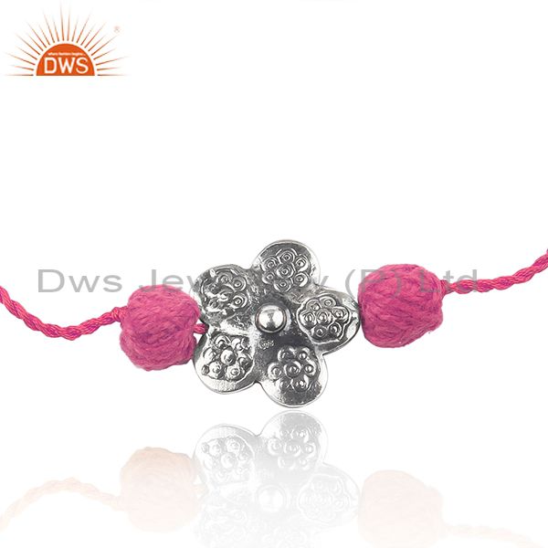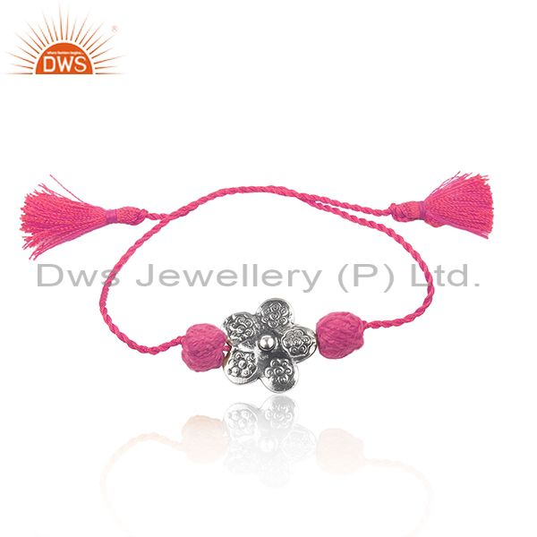 Oxidized Flower Designer 925 Silver Pink Macrame Bracelet Jewelry