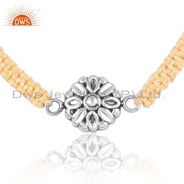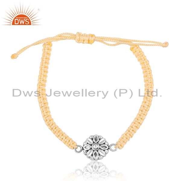 Oxidized Silver Round Charm Set Yellow Cotton Dori Bracelet