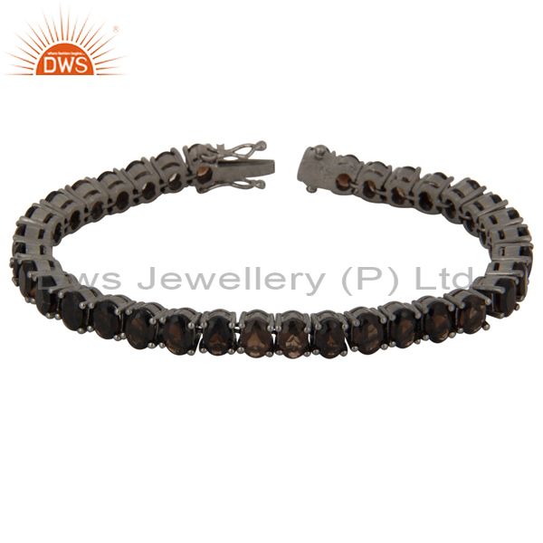Oxidized Solid Sterling Silver Smoky Quartz Gemstone Tennis Bracelet Jewelry