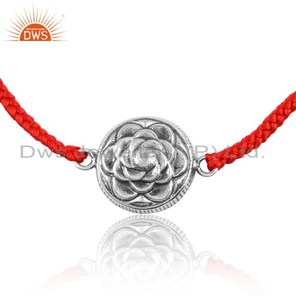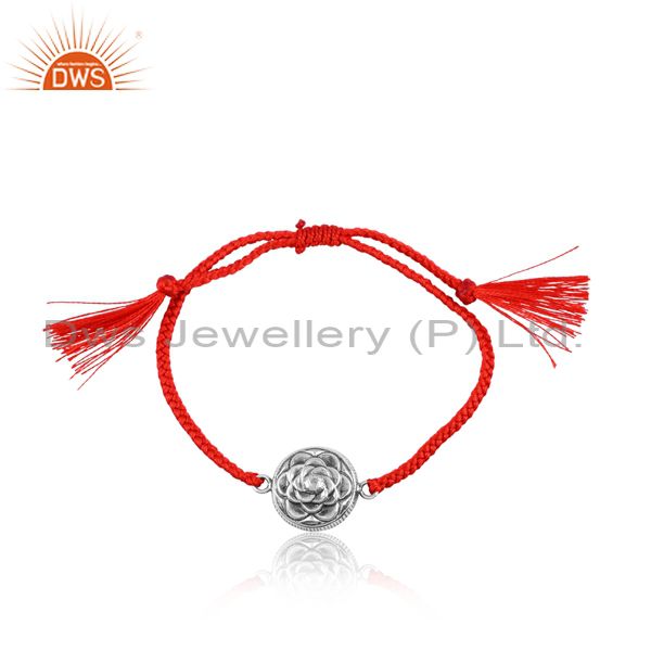 Oxidized Sterling Silver Charm Set Red Cotton Dori Bracelet