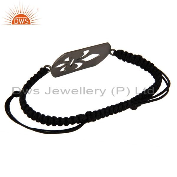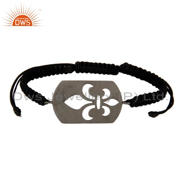 Oxidized Sterling Silver Fleur-De-Lis Sign Charms Black Cord Macrame Bracelet