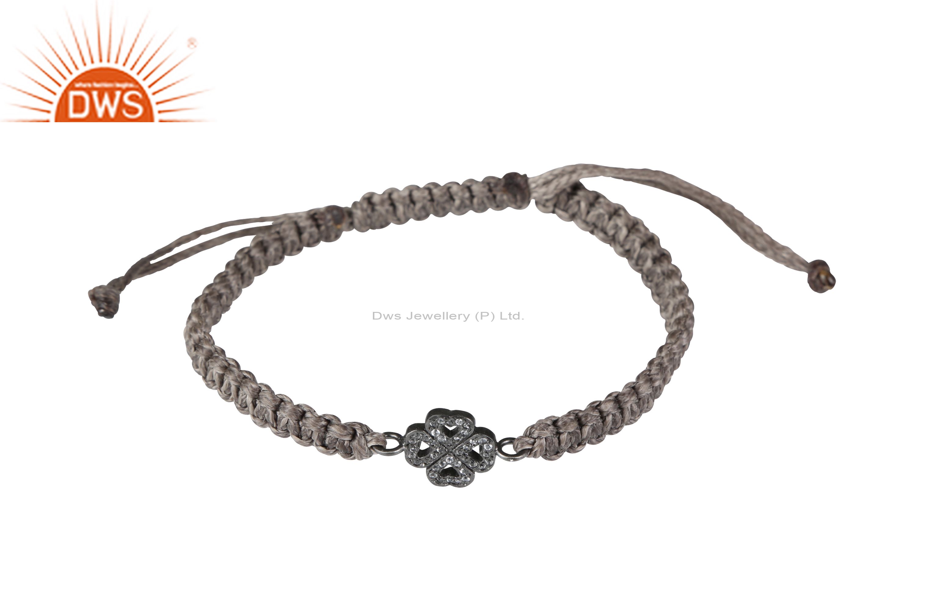 Oxidized Sterling Silver Heart Charms Adjustable Black Macrame Bracelet