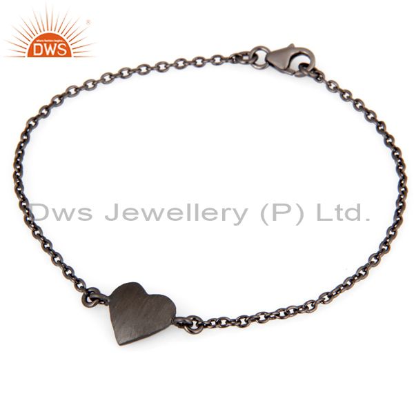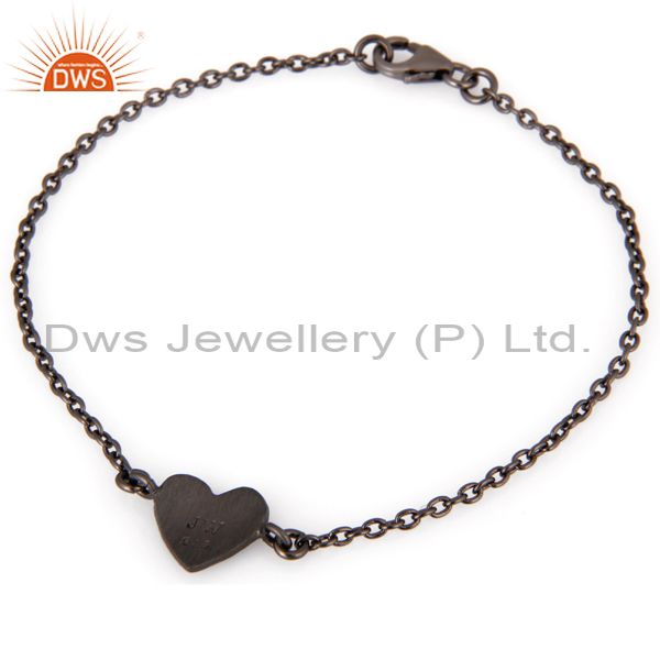 Oxidized Sterling Silver Heart Charms Link Charms Bracelet With Lobster Lock