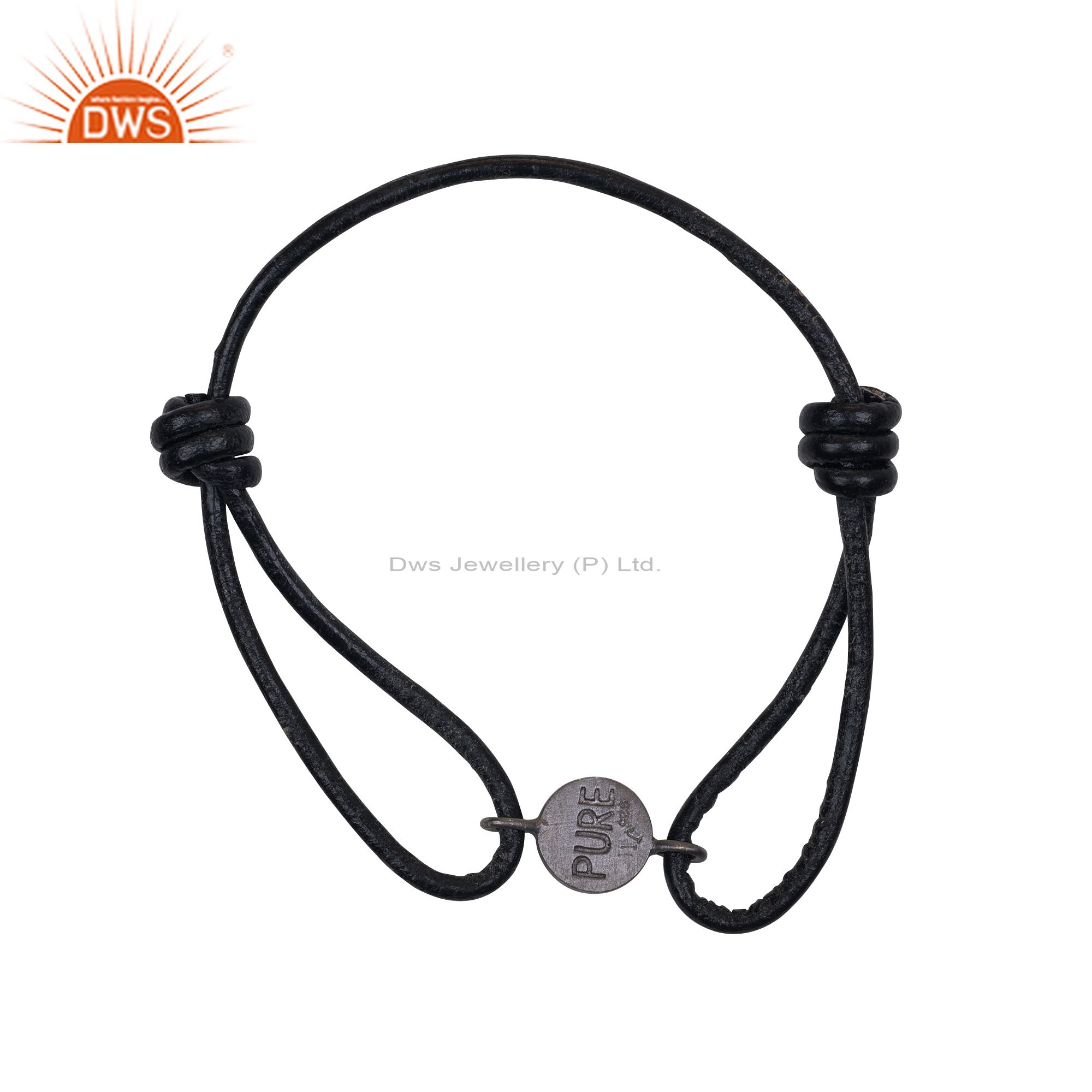 Oxidized Sterling Silver "Pure" Engraved Charms Black Cord Macrame Bracelet