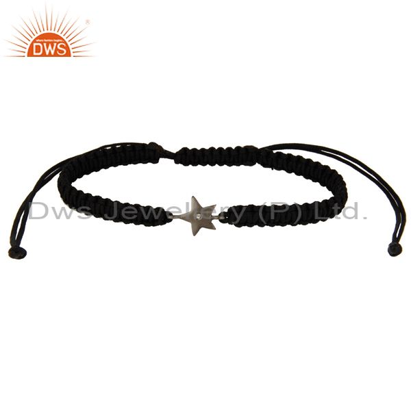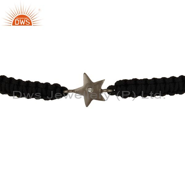 Oxidized Sterling Silver White Topaz Round Cut Star Charm Macrame Bracelet