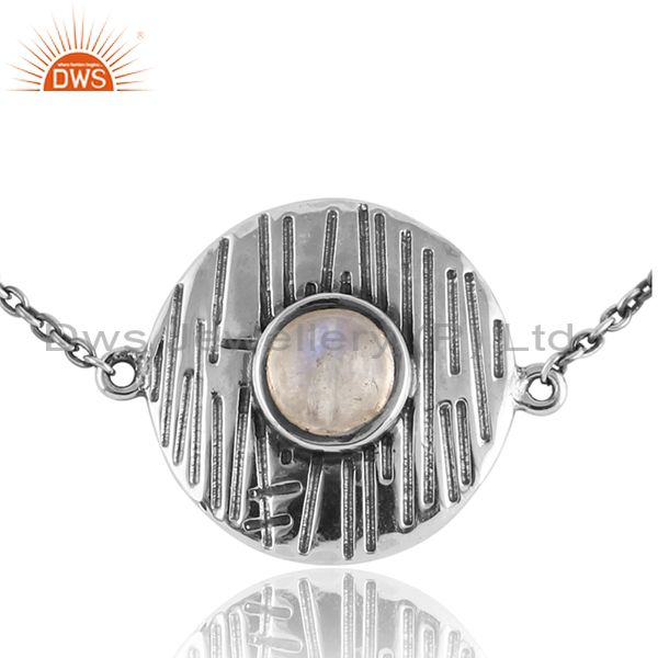 Oxidized Texture Sterling Silver Rainbow Moonstone Chain Bracelets