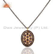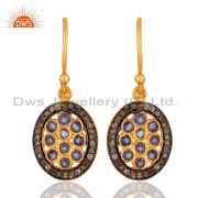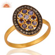 Pave Diamond And Iolite Gemstone 18K Gold Over Sterling Silver Chain Bracelets
