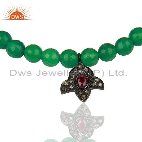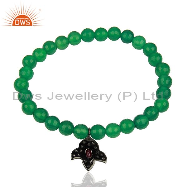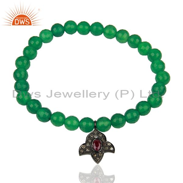Pave Diamond Green Onyx Gemstone Beads Strechable Bracelet Supplier