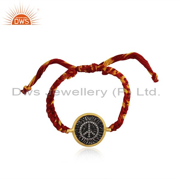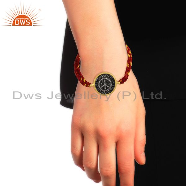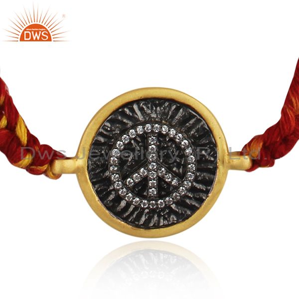 Peace Sign Gold And Rhodium Plated Silver Cz Bracelet