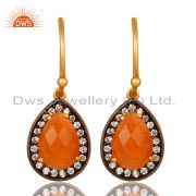 Peach Moonstone & Cubic Zirconia Sterling Silver Chain Bracelet With Gold Plated
