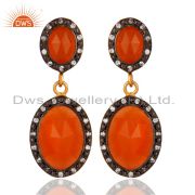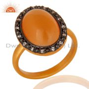 Peach Moonstone And Cubic Zirconia Fashion Chain Bracelet In 22K Gold On Silver