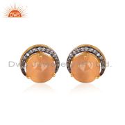 Peach Moonstone And CZ Designer Bracelet In 18K Gold Over Sterling Silver Jewelr
